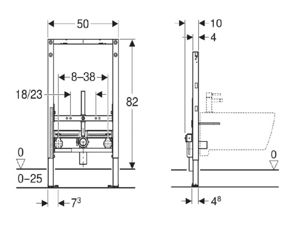 - Rozteč upevnenia závesného bidetu 18 alebo 23 cm