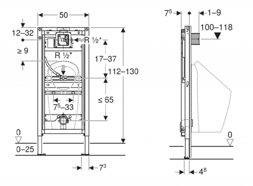 Montážny prvok Duofix pre pisoár, stavebná výška 112–130 cm, univerzálna, pre ostrekovaciu hlavicu