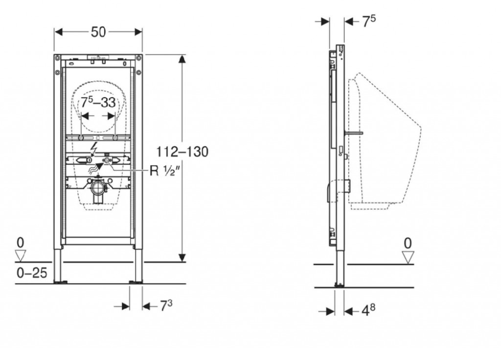 Montážny prvok Duofix pre pisoár, stavebná výška 112-130 cm