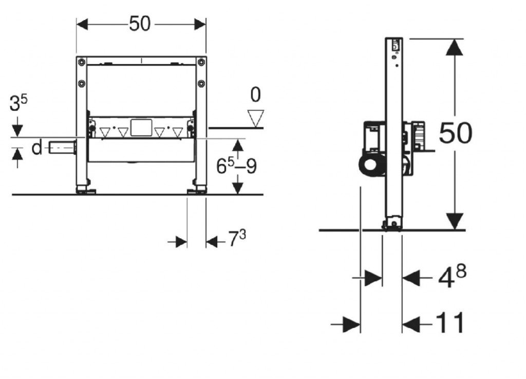 - hĺbka pätovej dosky vhodná na montáž do U profilov UW 50 a do systémových profilov Geberit Duofix