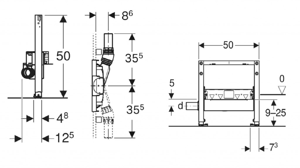 - Na montáž do systémových stien Geberit Duofix čiastočne vysokých alebo vysokých na výšku miestnosti