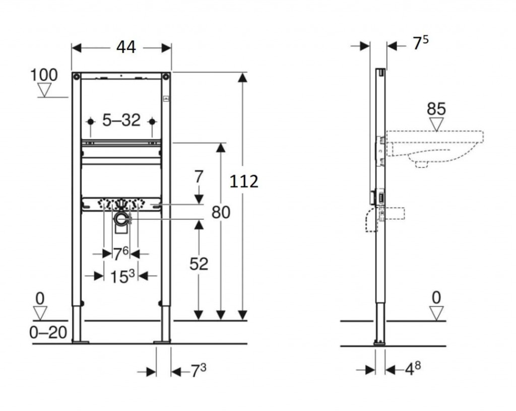 - na montáž do systémových stien Geberit Duofix čiastočne vysokých alebo vysokých na výšku miestnosti
