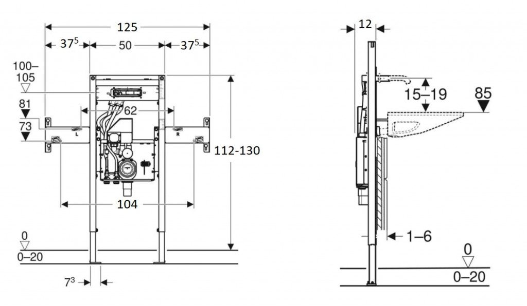 - podomietková krabica pre umývadlovú armatúru Geberit ONE, predmontovaná