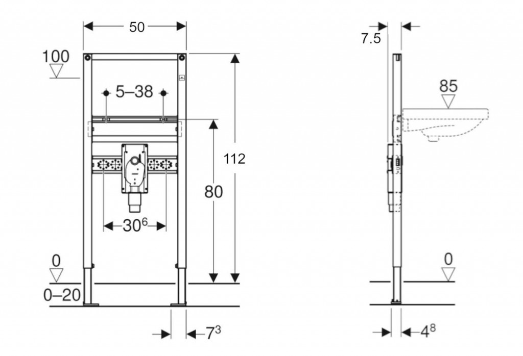 - hĺbka pätovej dosky vhodná na montáž do U profilov UW 50 a UW 75 a do systémových profilov Geberit Duofix