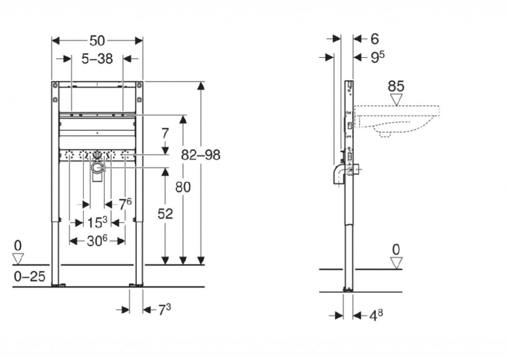 Montážny prvok Geberit Duofix pre umývadlo, 82–98 cm, stojanková armatúra