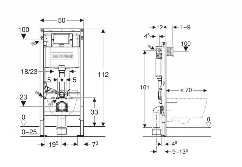 - Rám pre závesné WC s pripojovacími rozmermi podľa EN 33 a vyložením až 70 cm