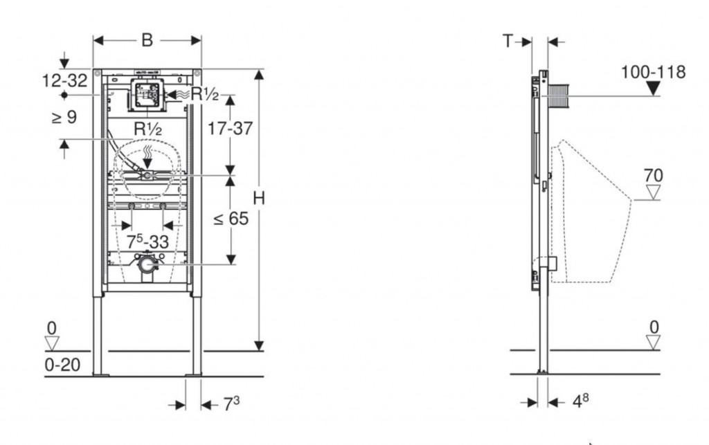 - Výška prvku od 112 cm do 130 cm, v závislosti od druhu keramiky pisoára