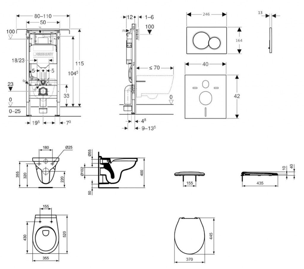 - Rám pre závesné WC s pripojovacími rozmermi podľa EN 33 a vyložením až 70 cm