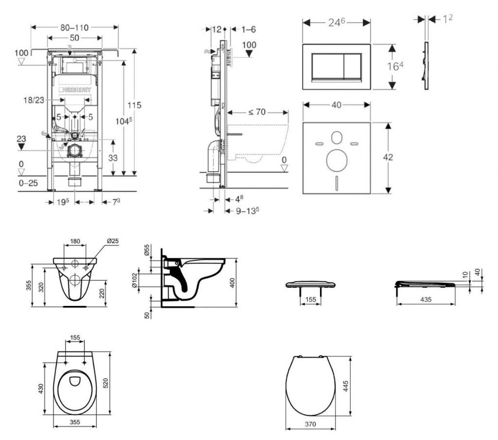 - Rám pre závesné WC s pripojovacími rozmermi podľa EN 33 a vyložením až 70 cm