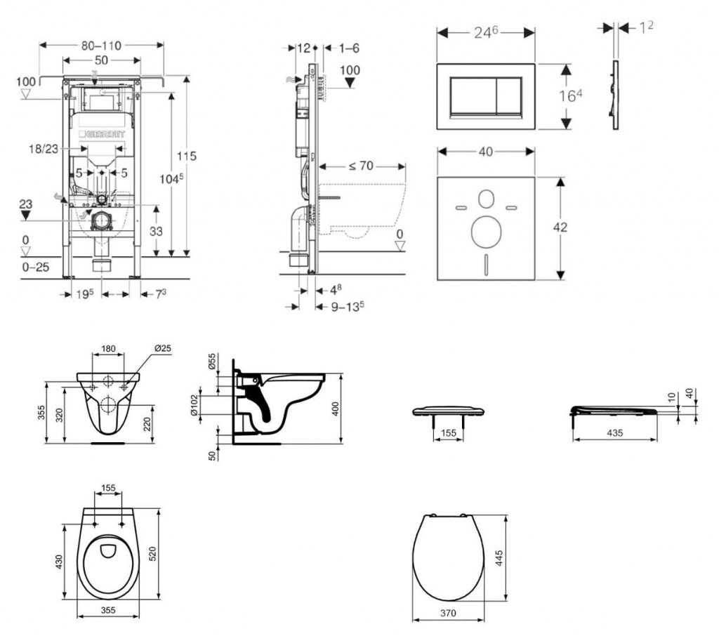 - Rám pre závesné WC s pripojovacími rozmermi podľa EN 33 a vyložením až 70 cm