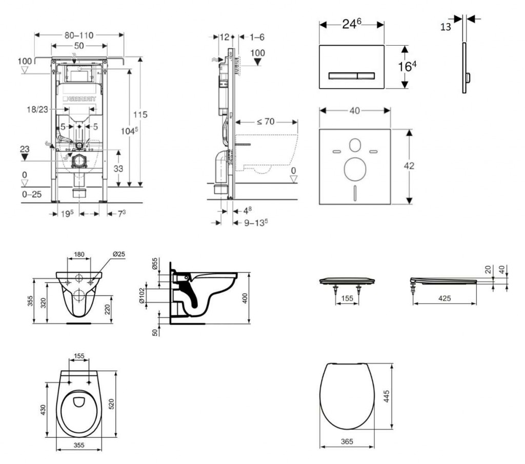 - Rám pre závesné WC s pripojovacími rozmermi podľa EN 33 a vyložením až 70 cm