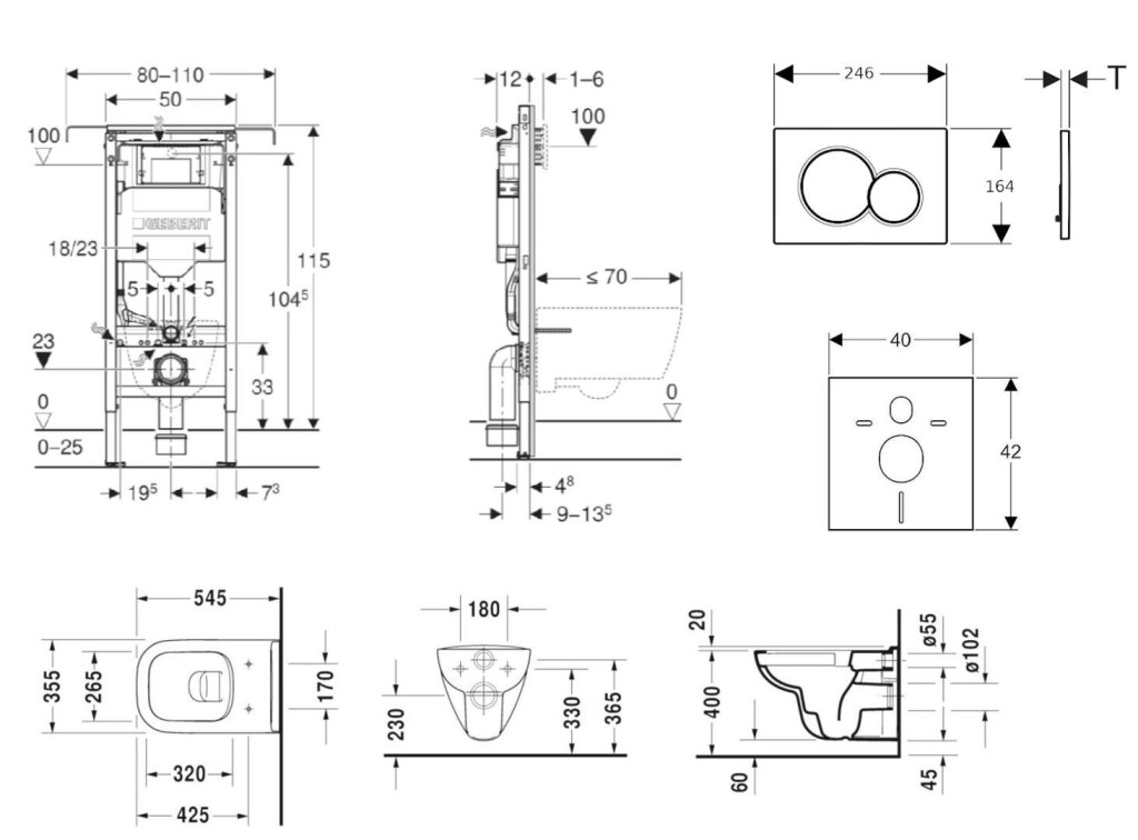 - Rám pre závesné WC s pripojovacími rozmermi podľa EN 33 a vyložením až 70 cm