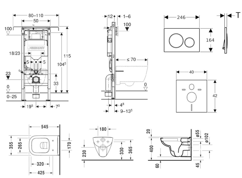 - Rám pre závesné WC s pripojovacími rozmermi podľa EN 33 a vyložením až 70 cm