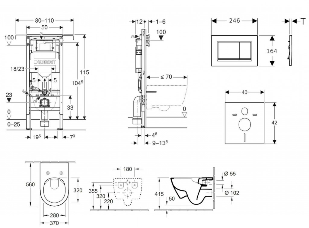 - Rám pre závesné WC s pripojovacími rozmermi podľa EN 33 a vyložením až 70 cm