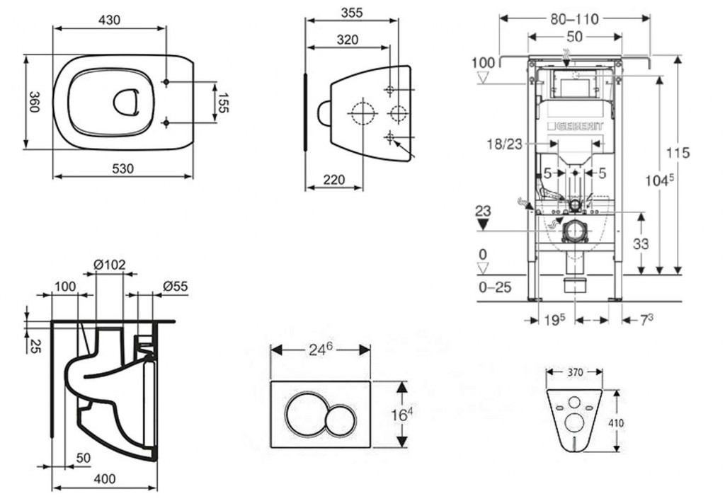 - Rám pre závesné WC s pripojovacími rozmermi podľa EN 33 a vyložením až 70 cm
