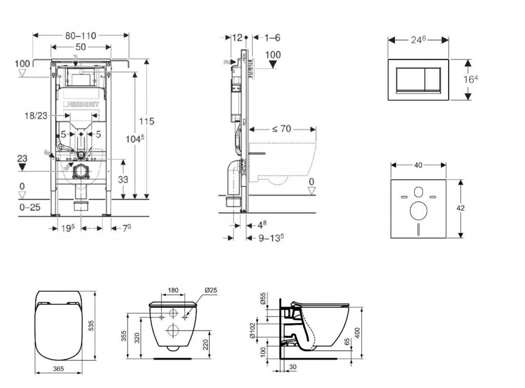 - Rám pre závesné WC s pripojovacími rozmermi podľa EN 33 a vyložením až 70 cm
