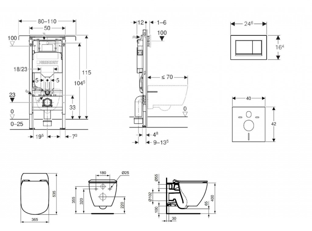 - Rám pre závesné WC s pripojovacími rozmermi podľa EN 33 a vyložením až 70 cm