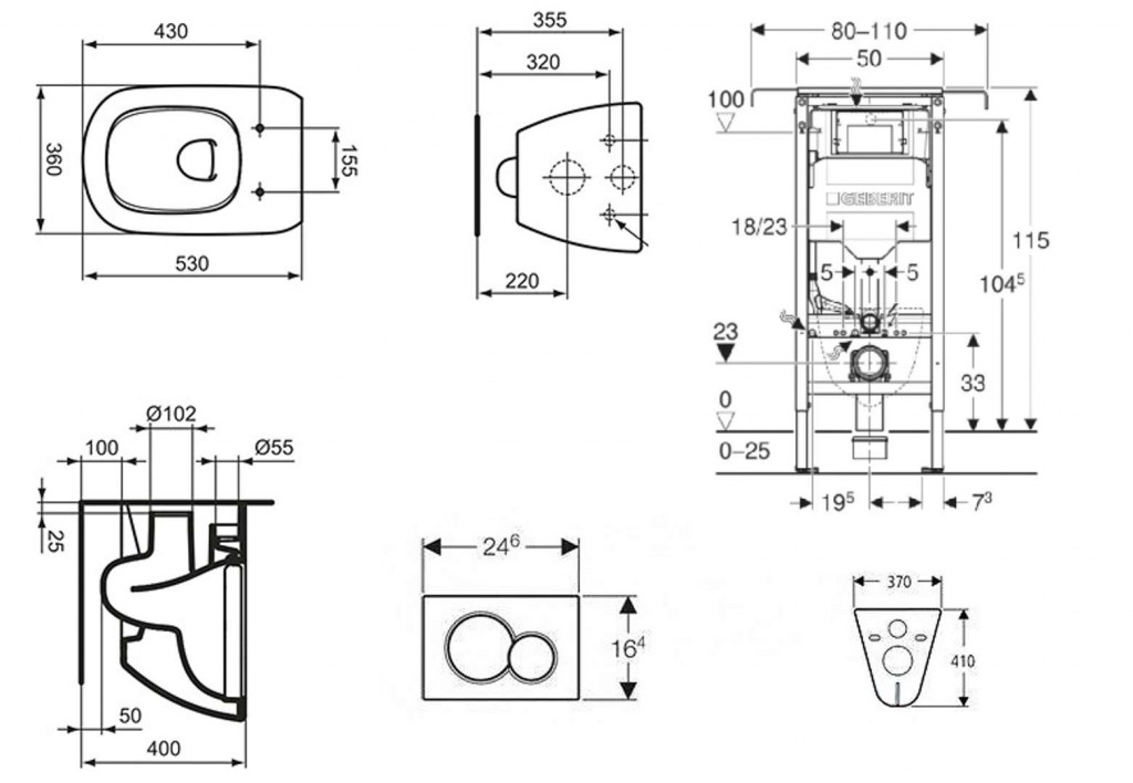 - Rám pre závesné WC s pripojovacími rozmermi podľa EN 33 a vyložením až 70 cm