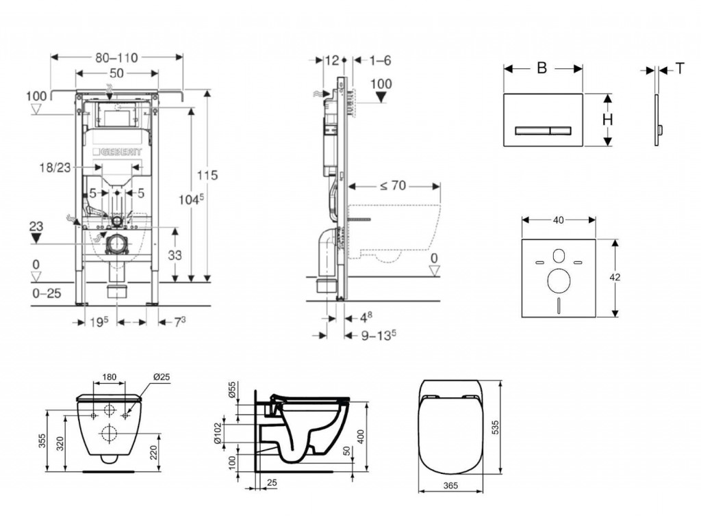- Rám pre závesné WC s pripojovacími rozmermi podľa EN 33 a vyložením až 70 cm