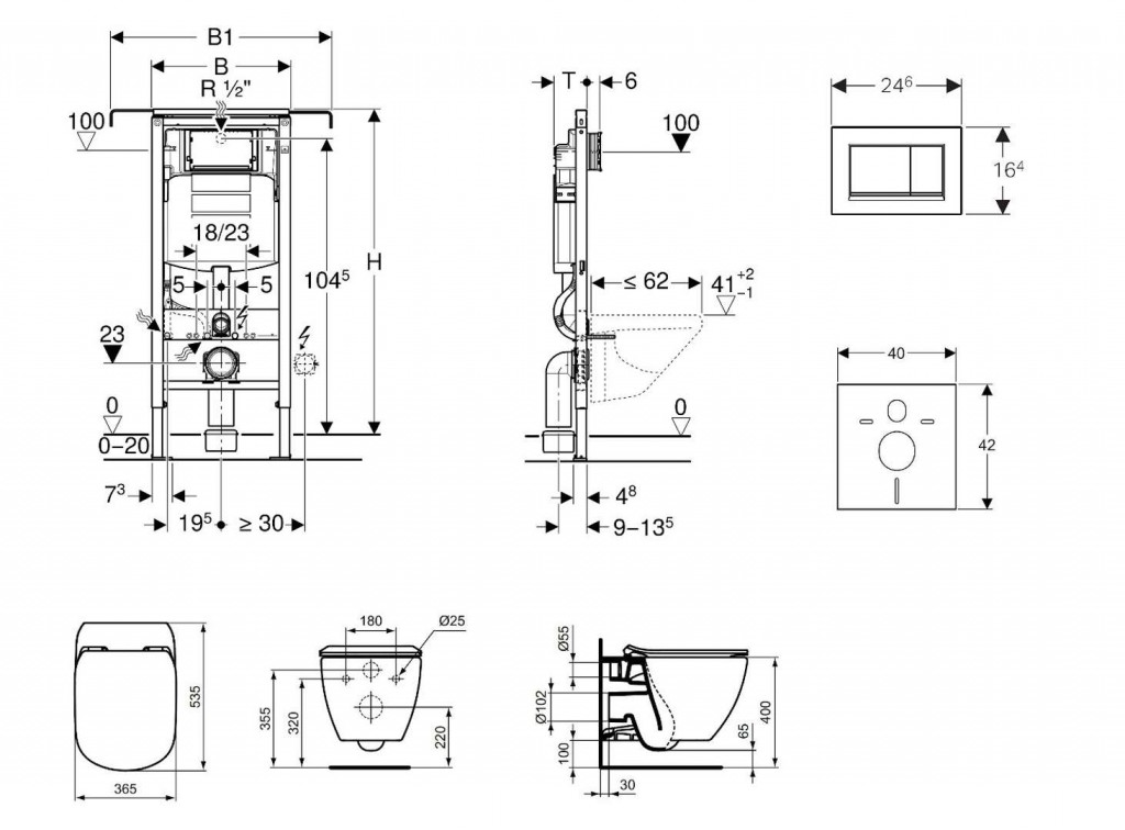 - na montáž do systémových stien Geberit Duofix čiastočne vysokých alebo vysokých na výšku miestnosti