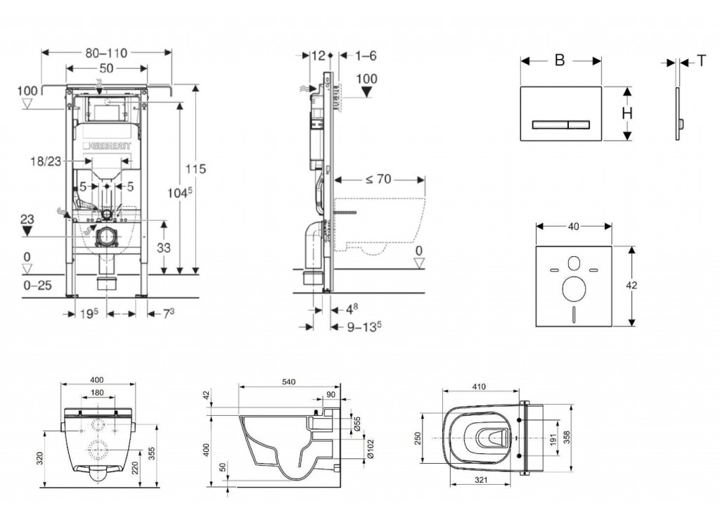 - Rám pre závesné WC s pripojovacími rozmermi podľa EN 33 a vyložením až 70 cm