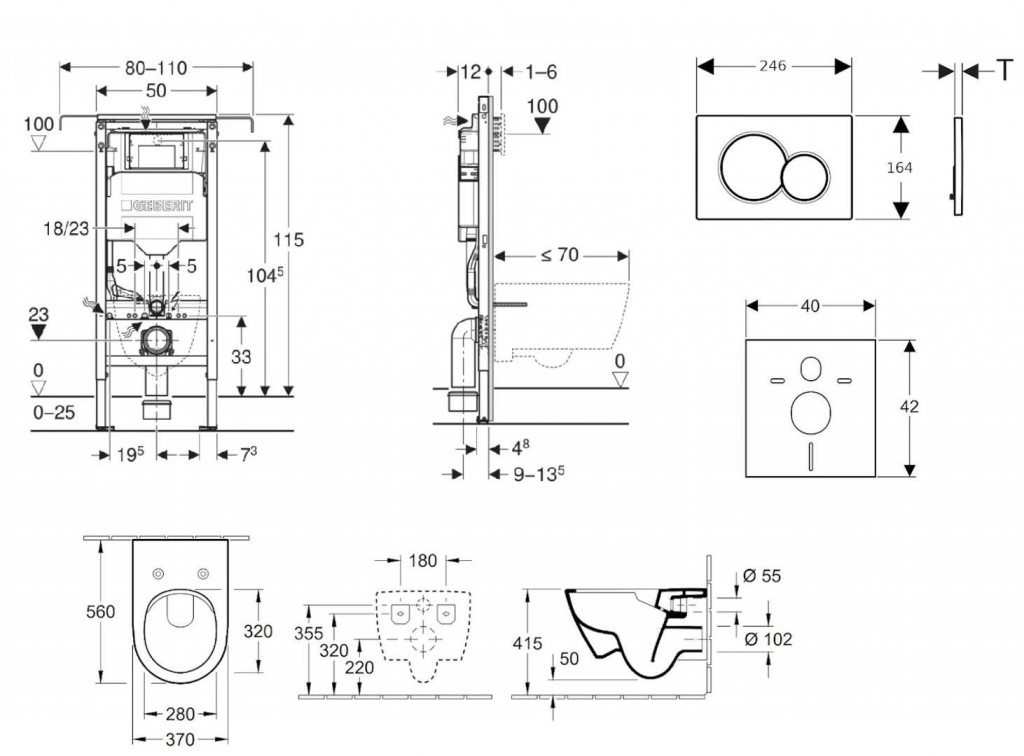 - Rám pre závesné WC s pripojovacími rozmermi podľa EN 33 a vyložením až 70 cm