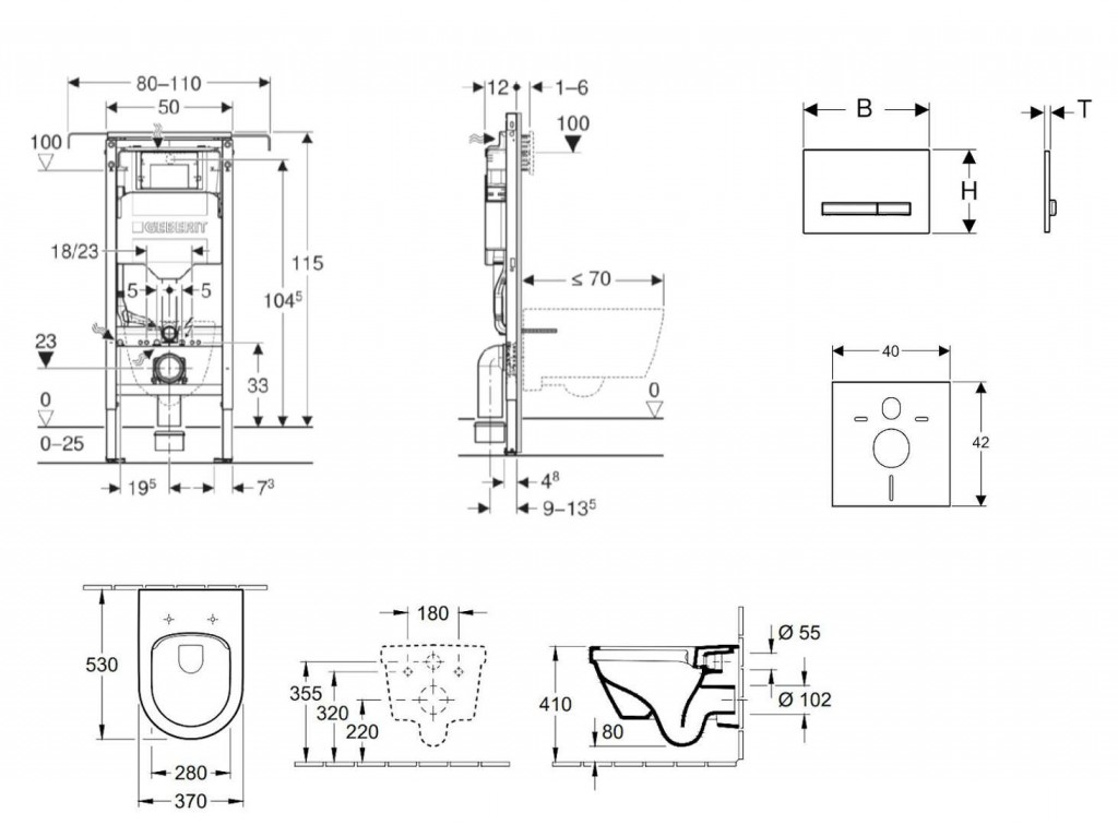 - Rám pre závesné WC s pripojovacími rozmermi podľa EN 33 a vyložením až 70 cm
