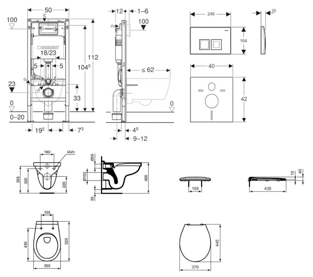 - rám pre nástenné WC s pripojovacími rozmermi podľa EN 33 a presahom do 62 cm