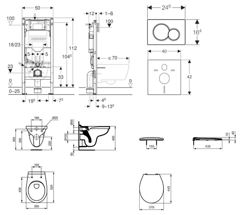 - na montáž do systémových stien Geberit Duofix čiastočne vysokých alebo vysokých na výšku miestnosti