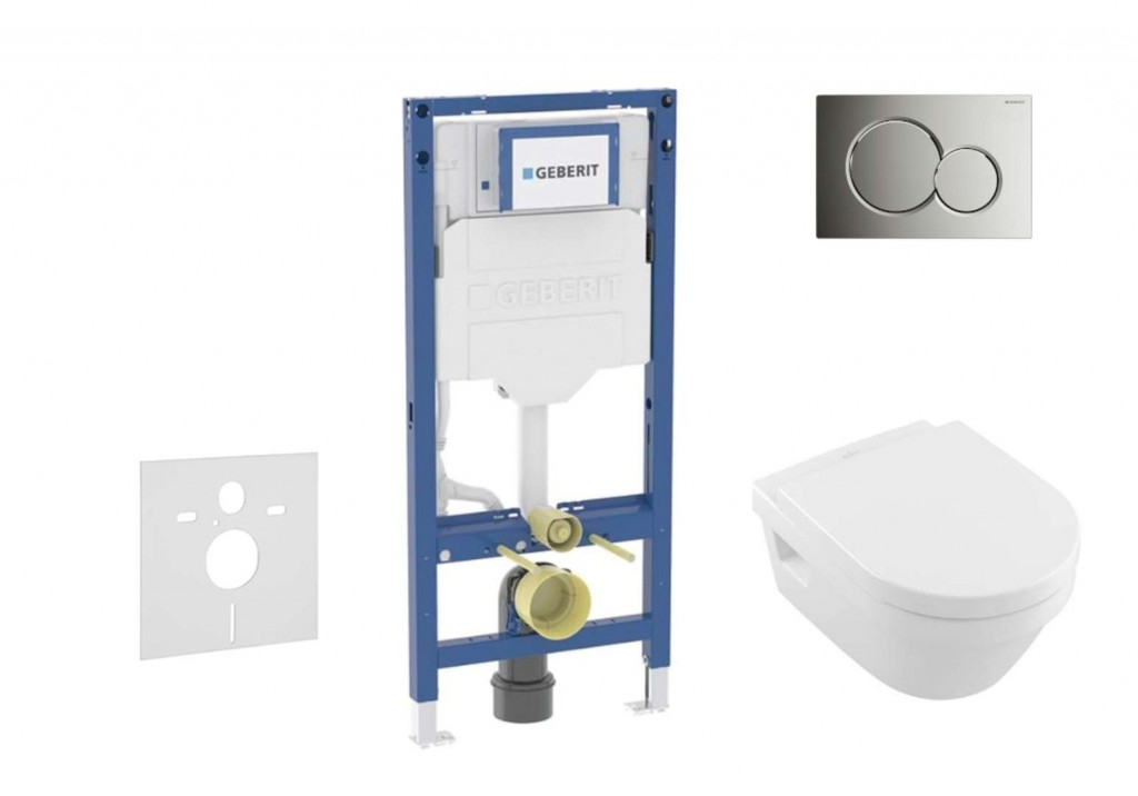 Set predstenovej inštalácie, klozetu a sedátka Villeroy & Boch, tlačidlá Sigma01, lesklý chróm