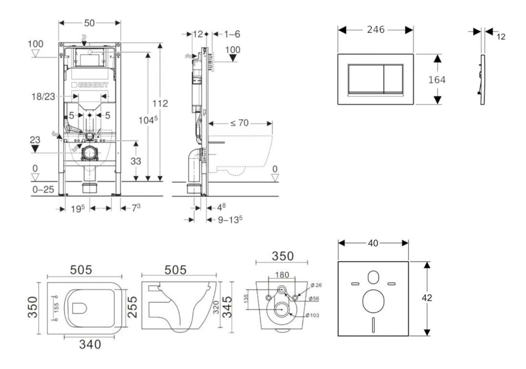 - na montáž do systémových stien Geberit Duofix čiastočne vysokých alebo vysokých na výšku miestnosti