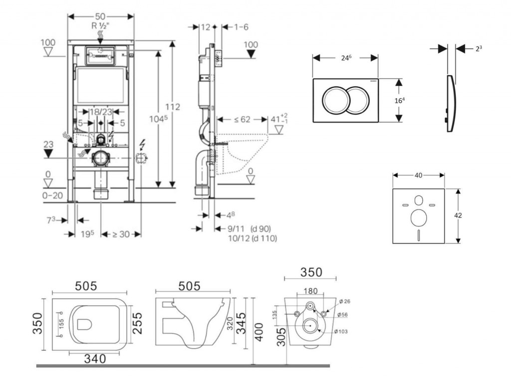 - pre montáž závesného WC so vzdialenosťou upevnenia 18 cm alebo 23 cm