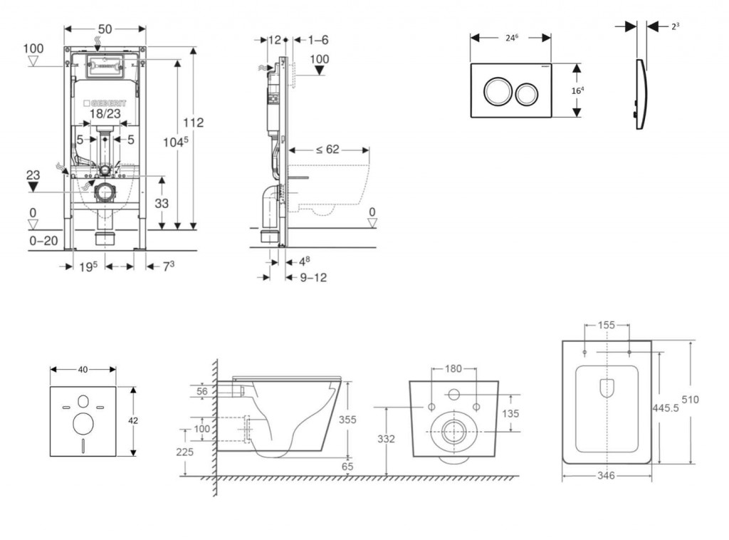 - rám pre nástenné WC s pripojovacími rozmermi podľa EN 33 a presahom do 62 cm