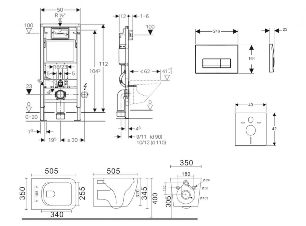 - pre montáž závesného WC so vzdialenosťou upevnenia 18 cm alebo 23 cm
