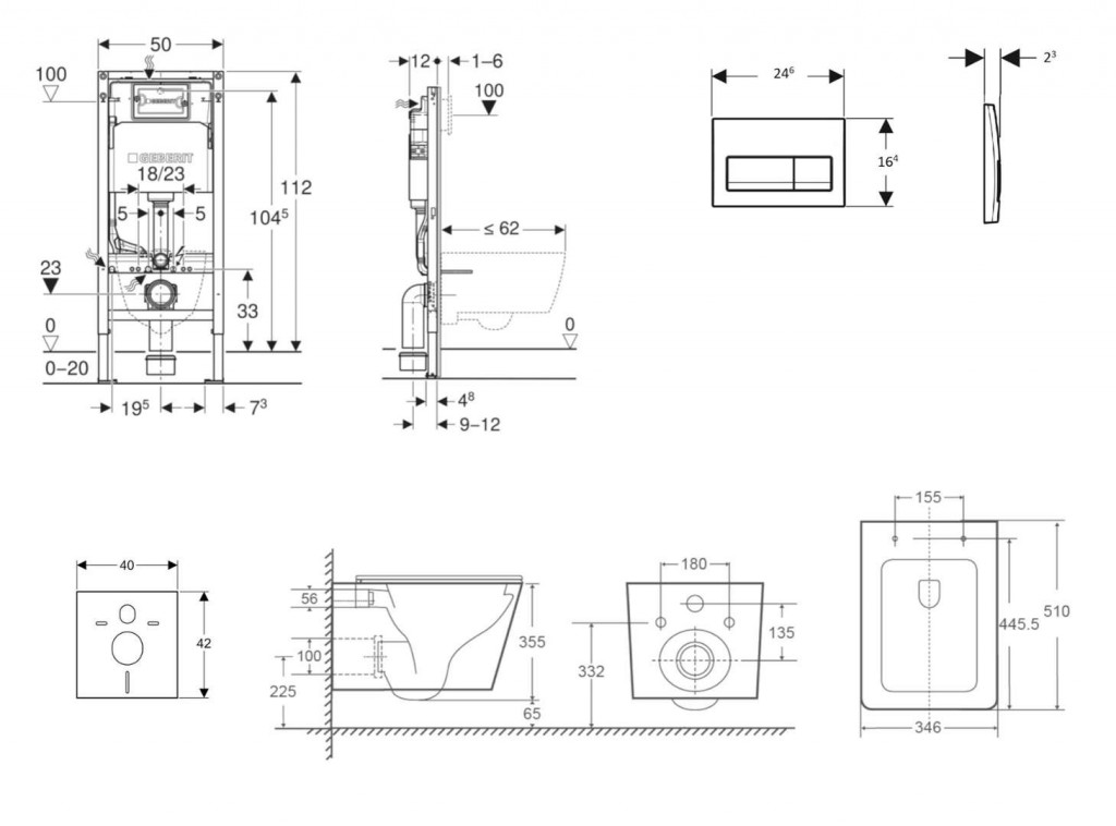 - rám pre nástenné WC s pripojovacími rozmermi podľa EN 33 a presahom do 62 cm