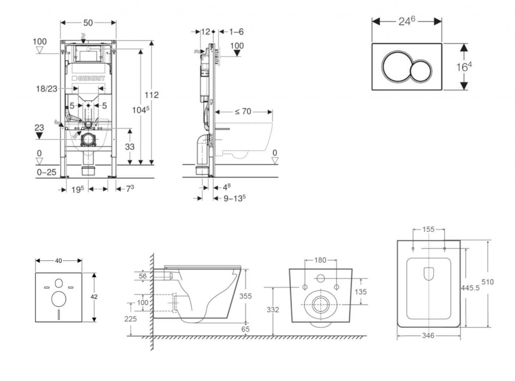 - na montáž do systémových stien Geberit Duofix čiastočne vysokých alebo vysokých na výšku miestnosti