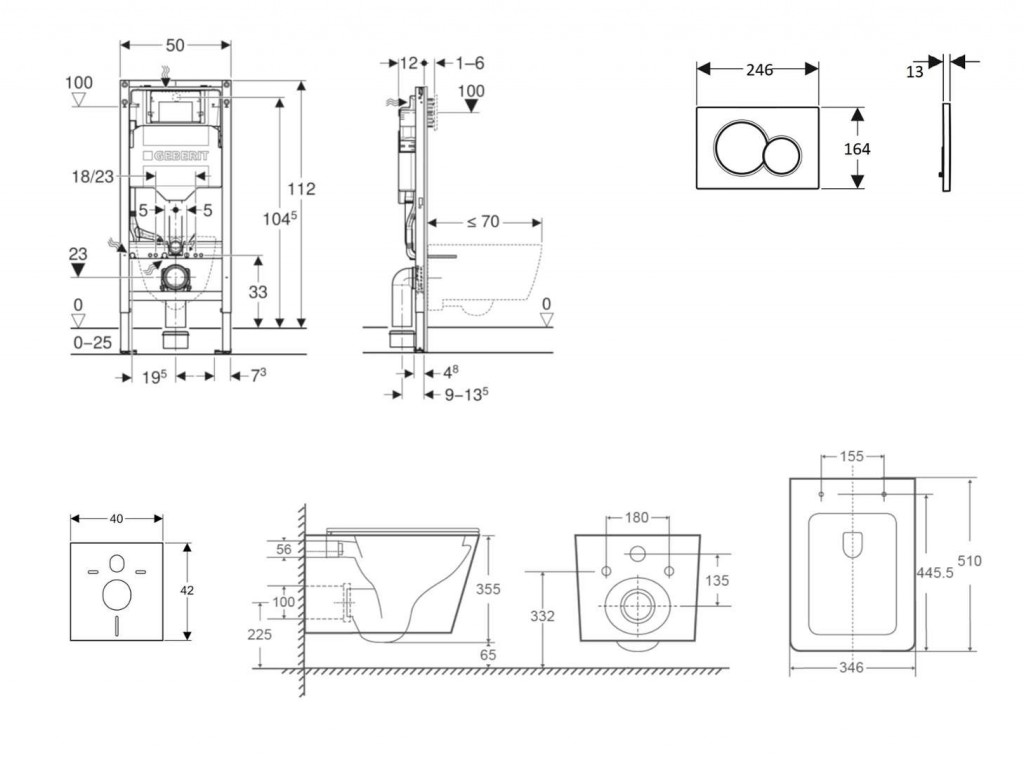 - na montáž do systémových stien Geberit Duofix čiastočne vysokých alebo vysokých na výšku miestnosti