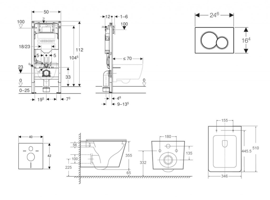 - na montáž do systémových stien Geberit Duofix čiastočne vysokých alebo vysokých na výšku miestnosti