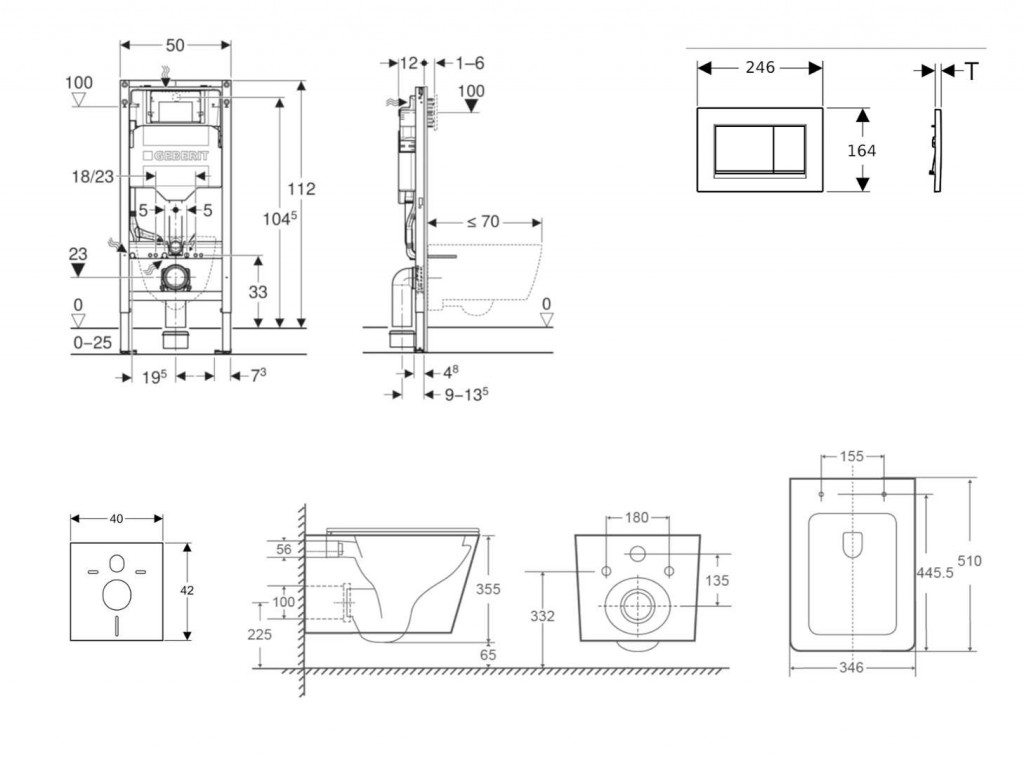 - na montáž do systémových stien Geberit Duofix čiastočne vysokých alebo vysokých na výšku miestnosti
