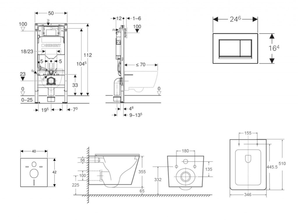 - na montáž do systémových stien Geberit Duofix čiastočne vysokých alebo vysokých na výšku miestnosti