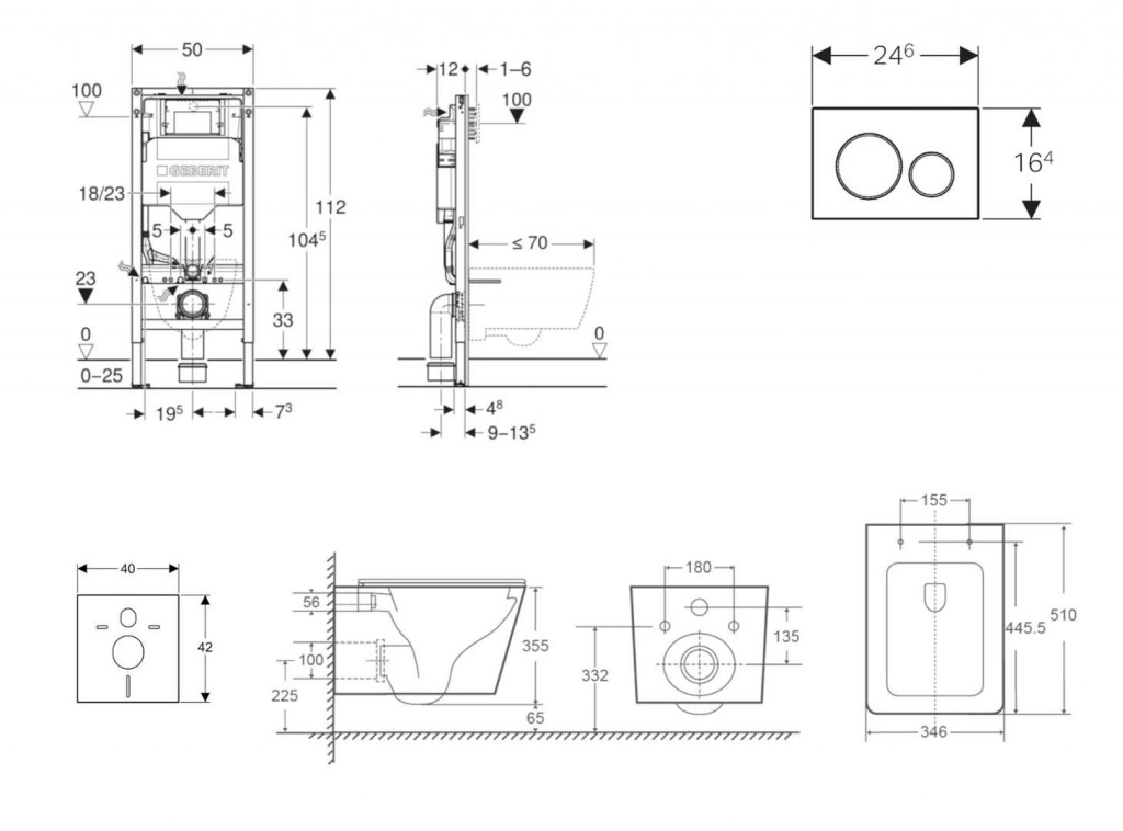 - na montáž do systémových stien Geberit Duofix čiastočne vysokých alebo vysokých na výšku miestnosti
