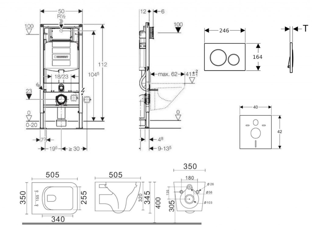 - na montáž do systémových stien Geberit Duofix čiastočne vysokých alebo vysokých na výšku miestnosti