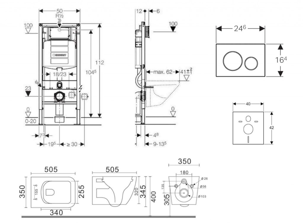 - pre závesné WC s pripojovacími rozmermi podľa EN 33:2011