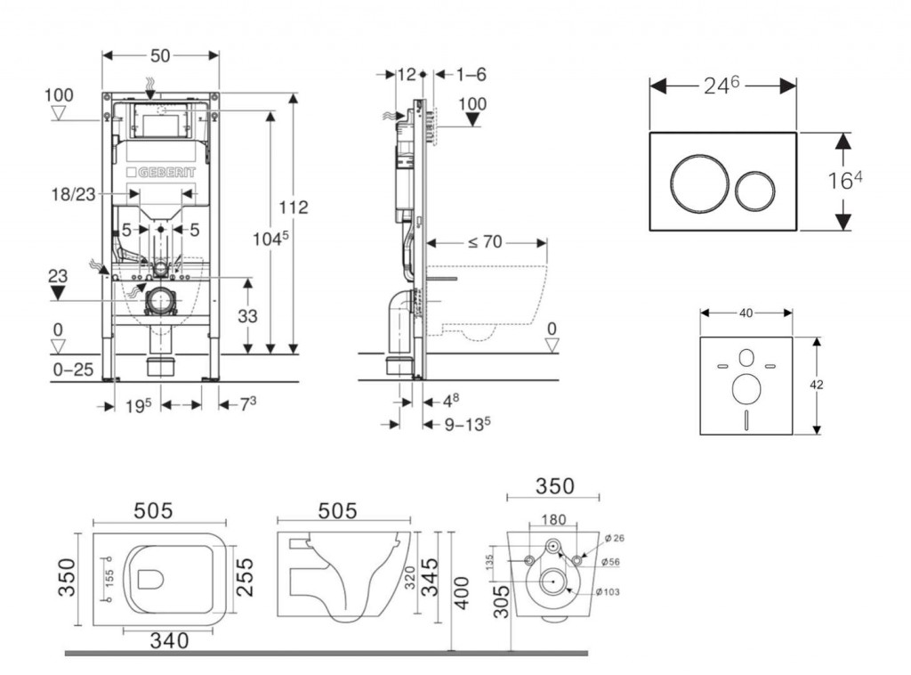 - na montáž do systémových stien Geberit Duofix čiastočne vysokých alebo vysokých na výšku miestnosti