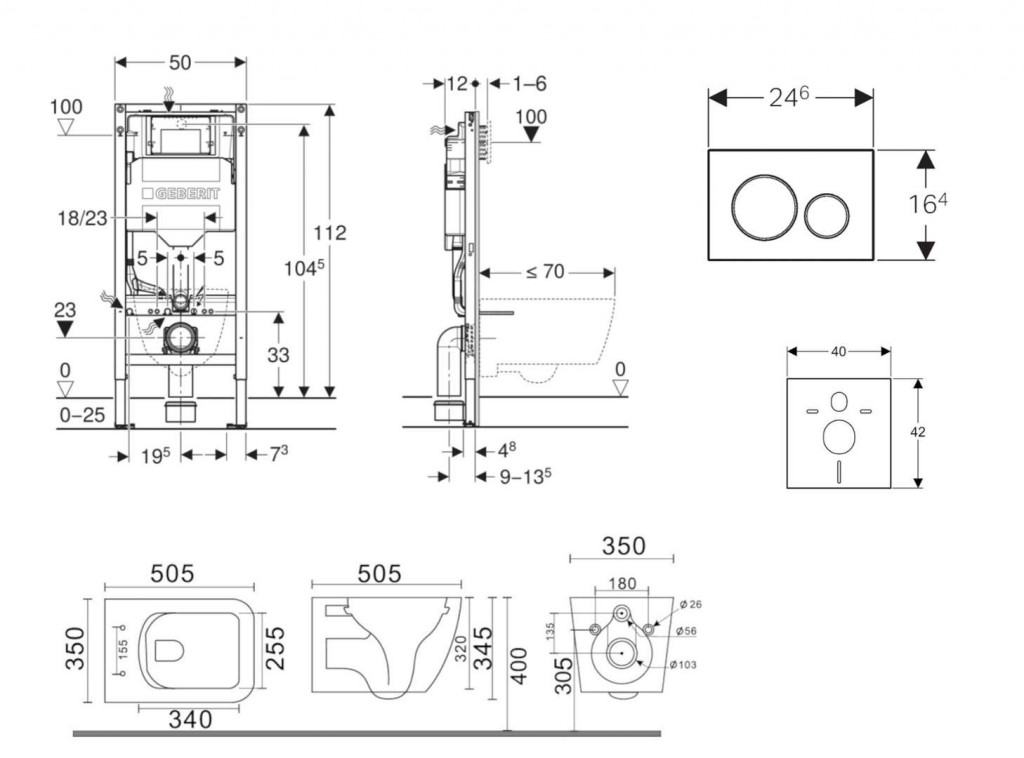 - na montáž do systémových stien Geberit Duofix čiastočne vysokých alebo vysokých na výšku miestnosti