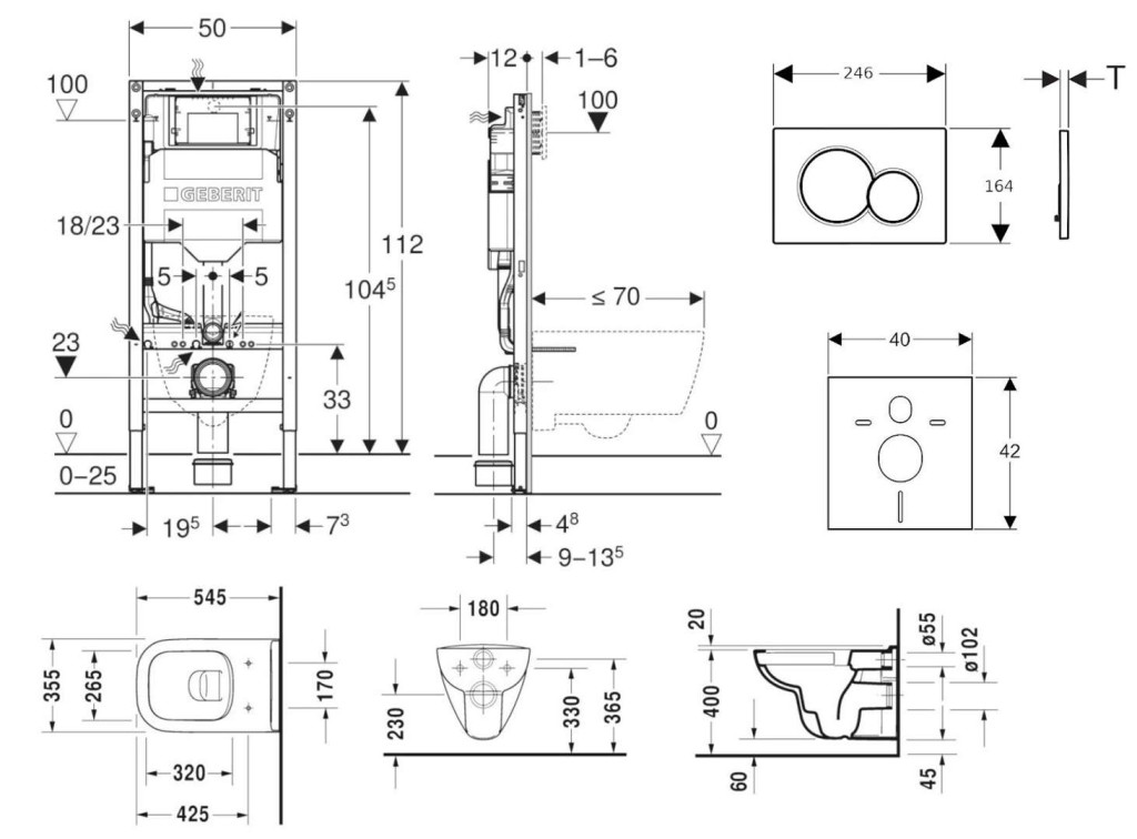 - na montáž do systémových stien Geberit Duofix čiastočne vysokých alebo vysokých na výšku miestnosti