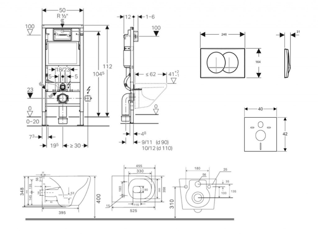 - pre montáž závesného WC so vzdialenosťou upevnenia 18 cm alebo 23 cm