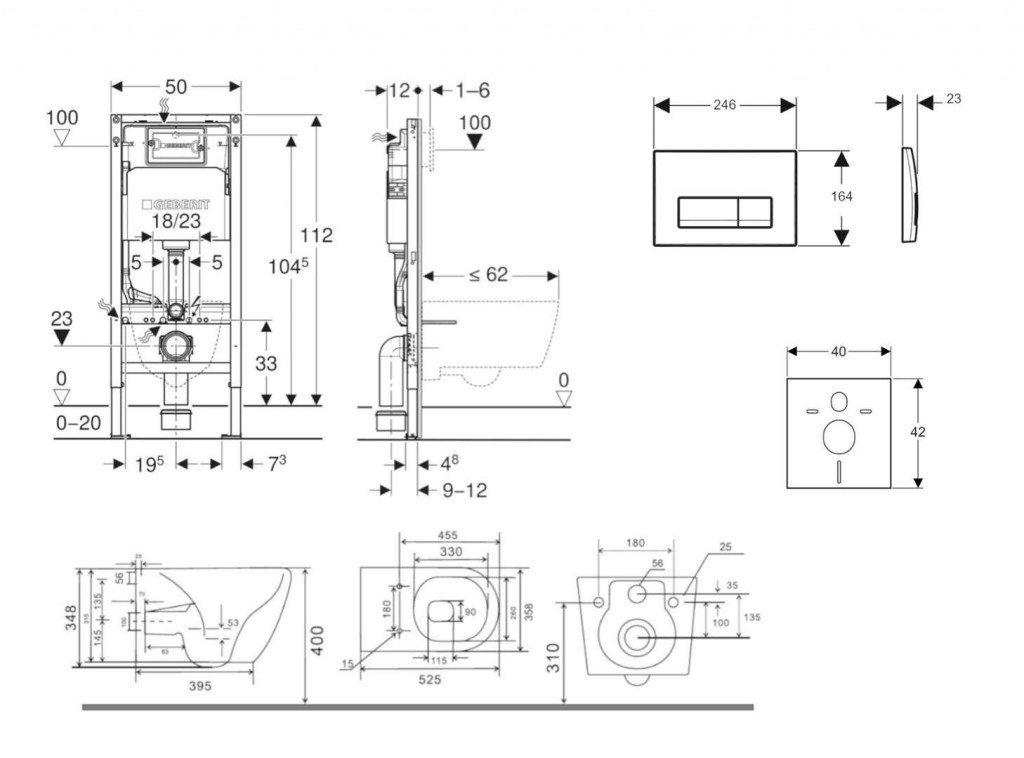 - rám pre nástenné WC s pripojovacími rozmermi podľa EN 33 a presahom do 62 cm