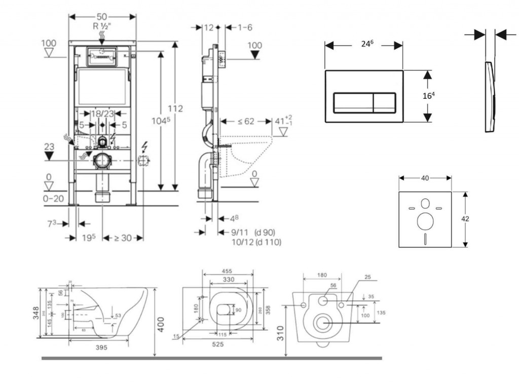 - pre montáž závesného WC so vzdialenosťou upevnenia 18 cm alebo 23 cm