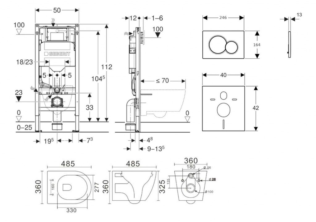 - na montáž do systémových stien Geberit Duofix čiastočne vysokých alebo vysokých na výšku miestnosti